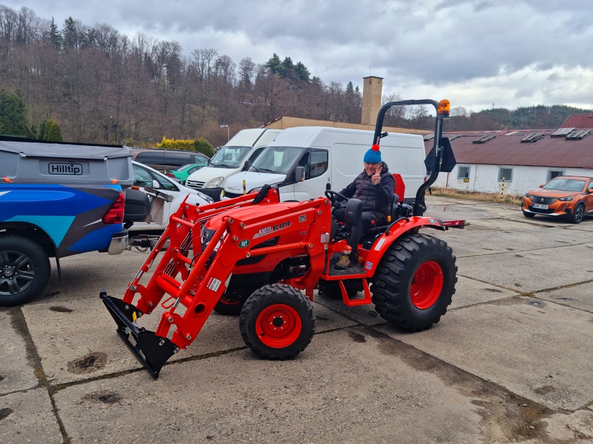 Pan Štěpán je majitelem traktoru Kioti CK4030H s čelním nakladačem. Traktor využívá pro přípravu půdy s rotavátorem a na sázení tulipánů.