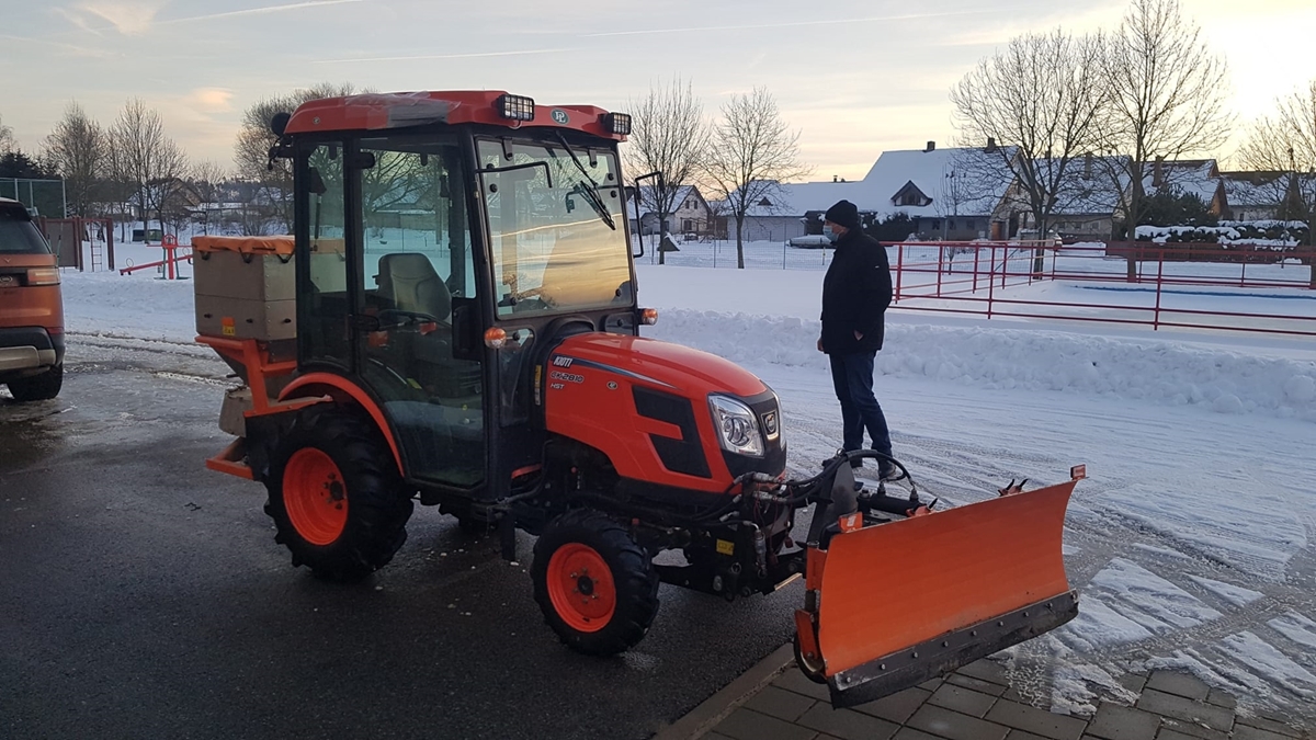 V Novém Veselí jezdí a stará se o zimní údržbu chodníků Kioti CK2810H s radlicí a rozmetadlem. Team Kioti!
