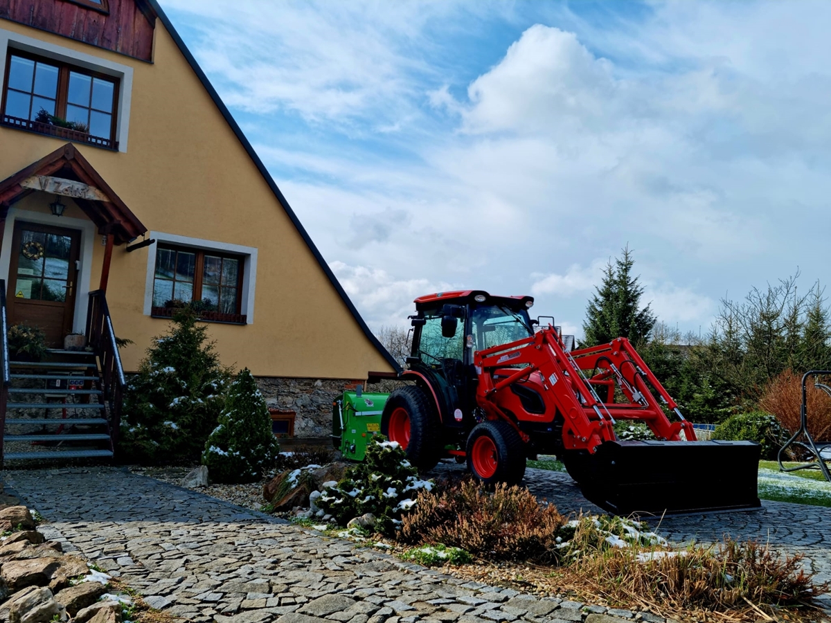 V Kempu Dolní Morava u Vrzalových můžete potkat Kioti DK6020C. Ve výbavě s čelním nakladačem, mulčovačem se sběrem a zadním mulčovačem. Stará se o celoroční údržbu kempu. Team Kioti!