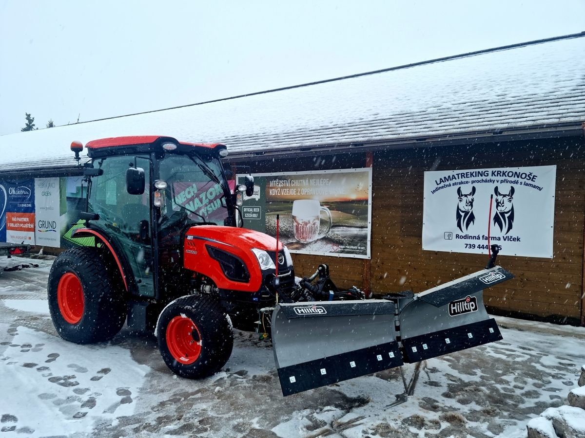 V Golf clubu Mladé Buky víc než 10 let sloužil ke spokojenosti Kioti DK451C a nastal čas na obměnu za nový DK6020C ve výbavě s čelní šípovou radlicí Hilltip, sněžnou frézou Trejon. Traktor zajišťuje celoroční údžbu areálu.