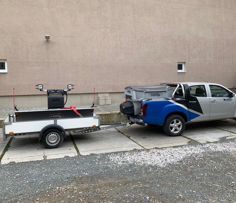 Firma AWIGO využívá od roku 2018 nastrojené Isuzu D-Max radlicí a rozmetadlem Hilltip. Využití je zejména v prohrnování logistických areálů.